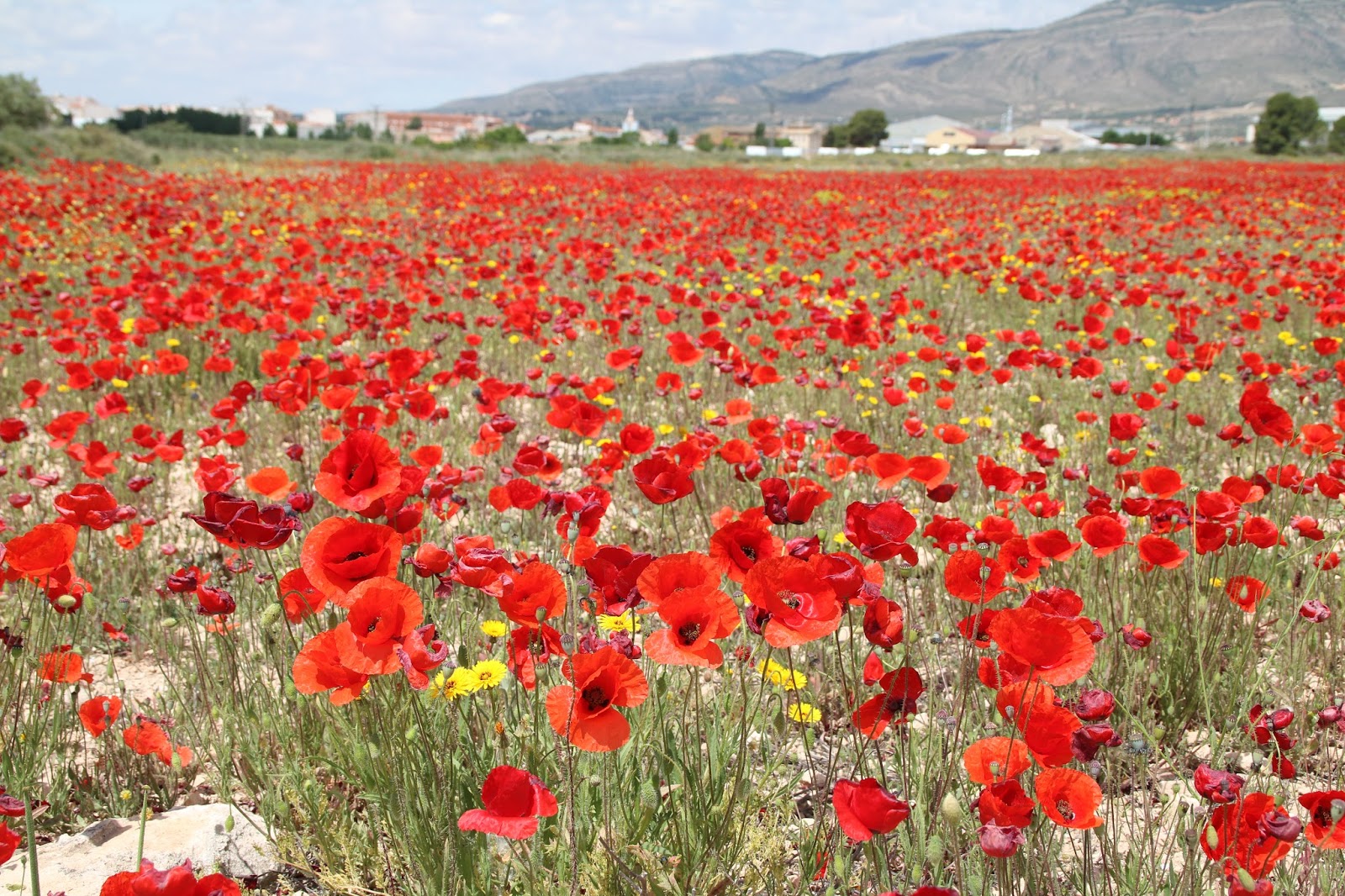Lo normal era verlas en medio del trigo y la cebada, en cunetas y ribazos, compartiendo terreno con las margaritas. De forma aislada. No invadiendo en exclusividad bancales enteros. No cabe duda que el agua... hace milagros.